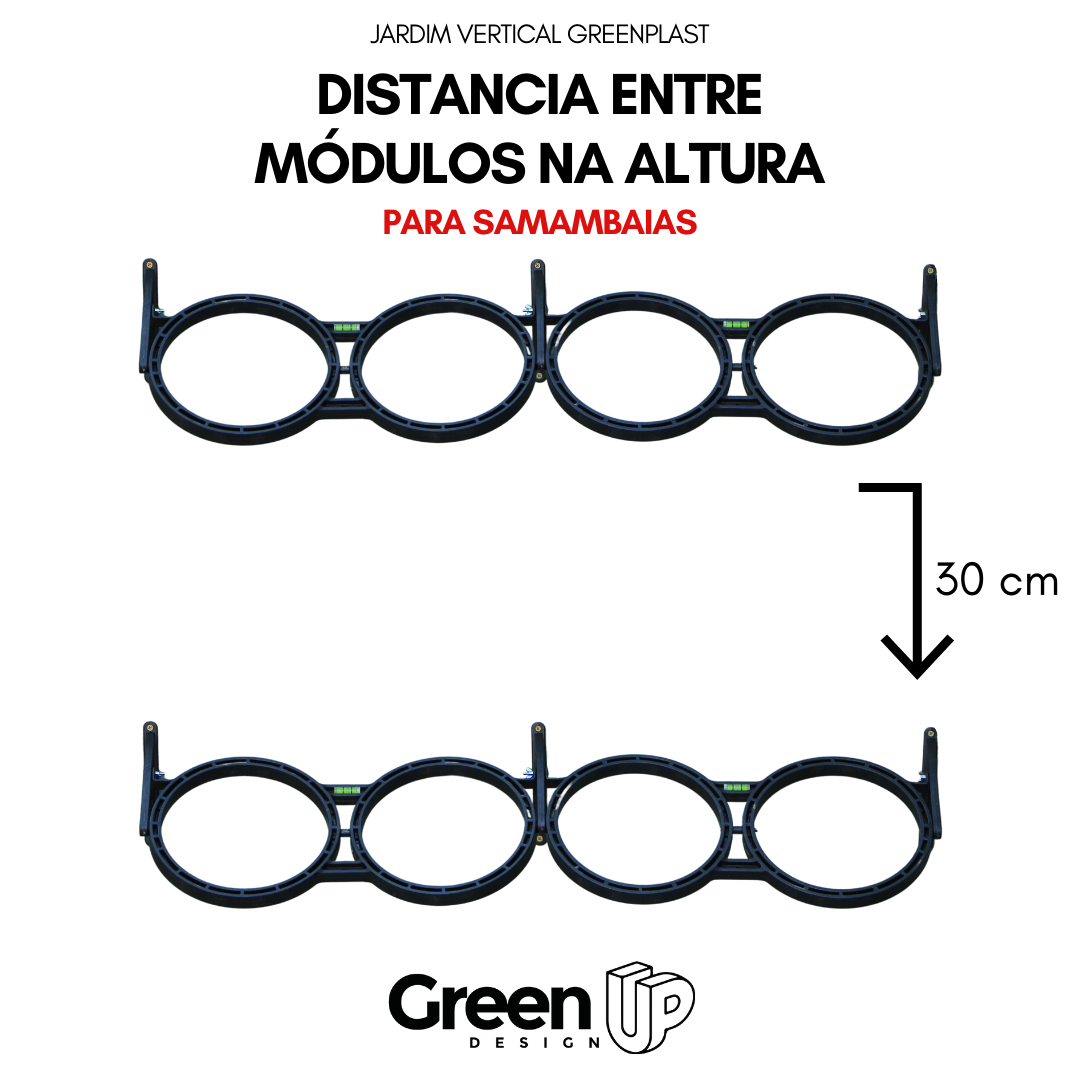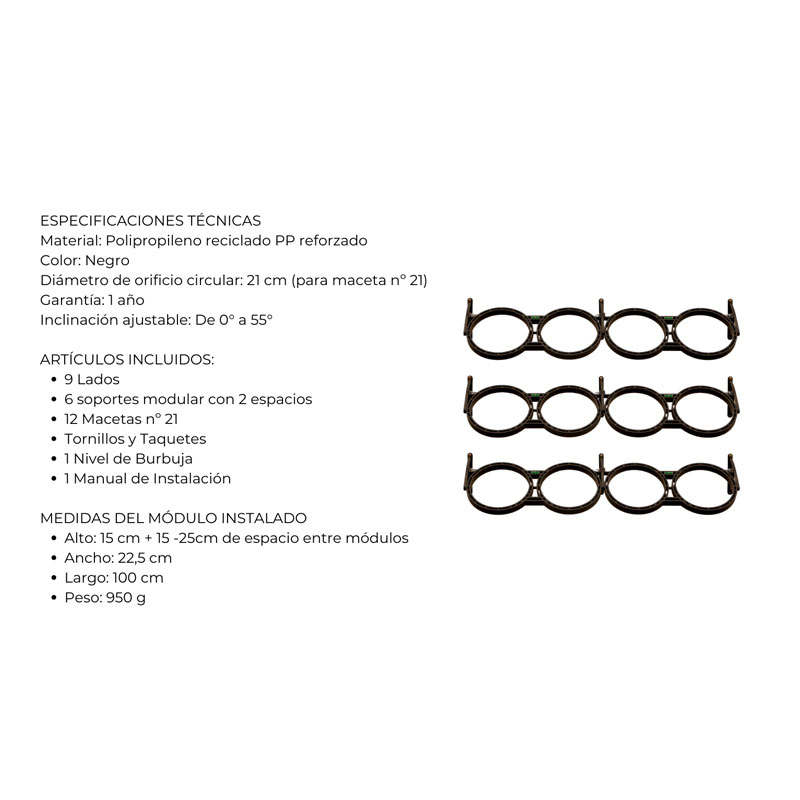 Nota: Para jardines compuestos únicamente por helechos voluminosos, recomendamos 2 módulos de 1 metro, separados 30cm verticalmente.