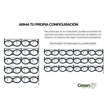 El Módulo Greenplast también se destaca por su versatilidad. Tras la instalación, simplemente coloque las plantas de su preferencia en macetas de 21 cm de diámetro. Esto facilita tanto la selección de plantas como su cultivo, permitiendo un cuidado sencillo y accesible para principiantes y jardineros experimentados.