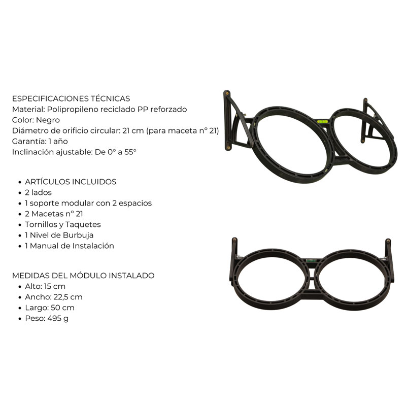 El Módulo Greenplast también se destaca por su versatilidad. Tras la instalación, simplemente coloque las plantas de su preferencia en macetas de 21 cm de diámetro. Esto facilita tanto la selección de plantas como su cultivo, permitiendo un cuidado sencillo y accesible para principiantes y jardineros experimentados.